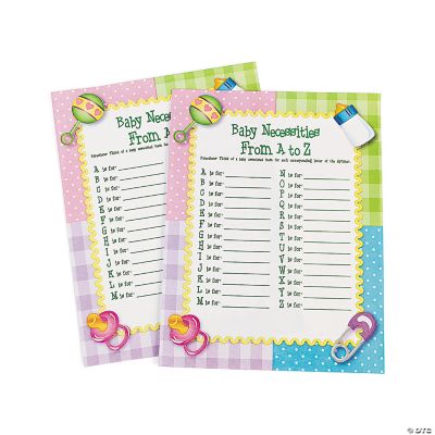 Do take your time to figure out what would best suit the baby shower the season the invitees and of course - mom-to-be. Choose your Baby Shower Game design and purchase via PayPal. No Shipping Cost and print as many as you need. A guaranteed icebreaker for your party this fun activity challenges guests to make a list of baby items from A to Z. Available in 3 versions blue for boys pink for girls a neutral version too. A pen will give one point a jar of baby food nets 20-points. Your guests will enjoy this fun baby necessity game and soon theyll be laughing and sharing their.