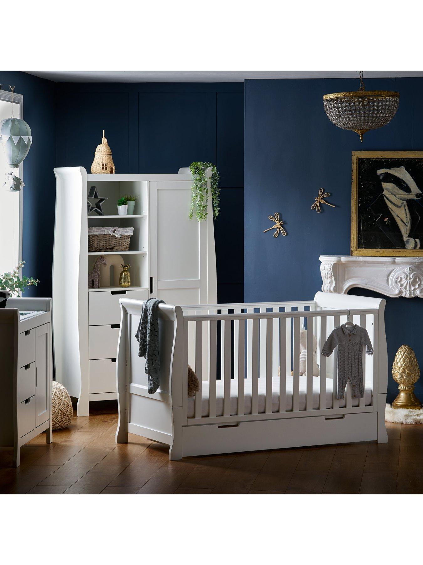 Get it Fri Nov 12 - Mon Nov 22. Home Furniture Baby School Office Supplies Toys 0 15 15 25 25 50 50 100 100. A wide choice of colours from fresh white and cream to statement navy and grey are on hand to. Customize your dream nursery for as low as 64999. We provide you the best collections of modern baby furniture so that you can explore the creativity in you to customize the perfect signature nursery for your baby. Cot Bed Easily Converts to Junior Bed up to 5 years Dresser 3 Full Width Drawers Removable Changing Station Beautiful White Finish 4 Inch High Density Foam Mattress 140x70cm. We have an array of superb quality three-piece sets from top baby brands like Mamas Papas and Cuggl which include a cot chest of drawers and baby wardrobes as well for the complete baby furniture starter.
