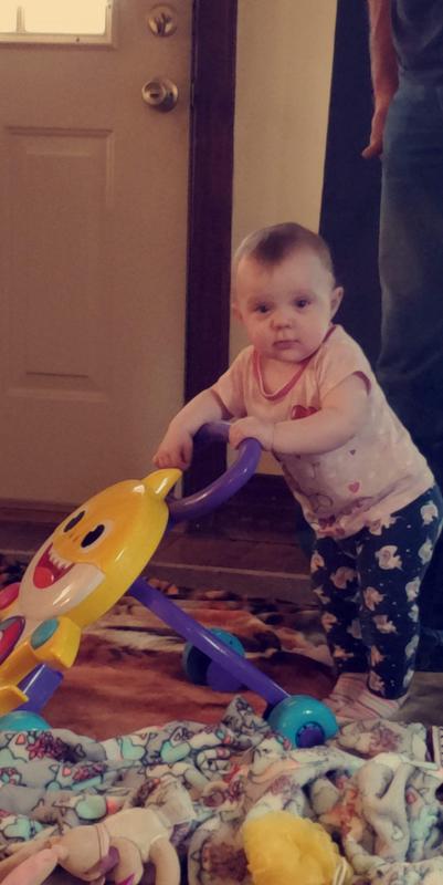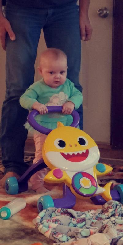 Your toddler will love this Baby Shark Melody Walker to walk around or sit and play. 5 light up buttons each play a different song including the Baby. Your toddler will love this Baby Shark Melody Walker to walk around or sit and play.