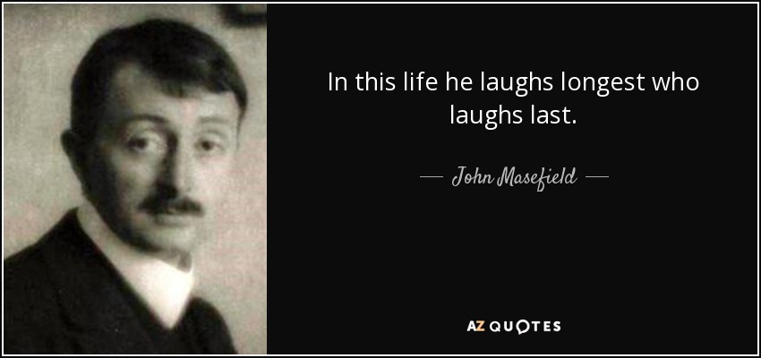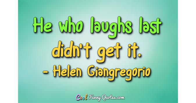 In the end another person may be more successful than you. Life is a game. Memorable quotes and exchanges from movies TV series and more. Laugh on laugh on my freind. He who laughs last has not yet heard the bad news. He who laughs lasts. List 27 wise famous quotes about He Who Laughs Last.